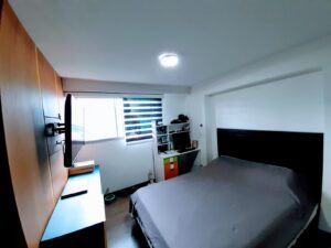 3 alcobas, la ppal con baño y vestier, las otras dos con baño y closet.
