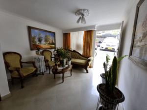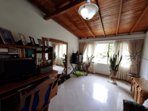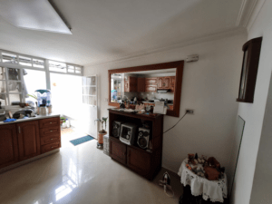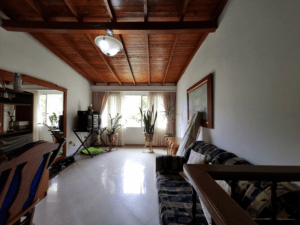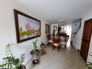 Casa de 3 pisos, en el primero sala comedor, cocina, patio, un baño social. En el segundo piso 2 dos habitaciones, baño social y en el tercer piso una habitación y una biblioteca con baño, además una guardilla muy amplia para almacenar.